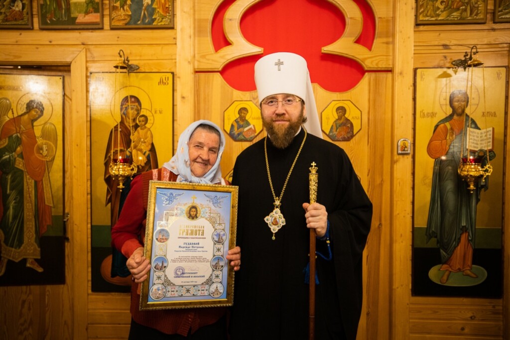 Во внимание к многолетним усердным трудам во благо Церкви Христовой, за активное участие в жизни прихода храма Рождества Пресвятой Богородицы г.Саратова, а также в связи с 20-летием со дня основания храма Архиерейских грамот были удостоены прихожане: