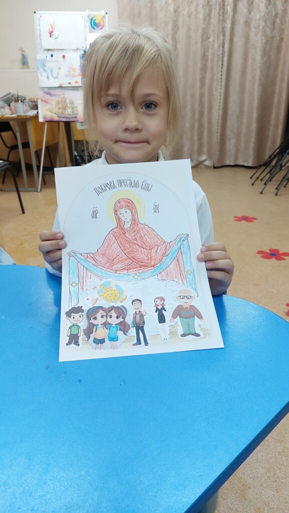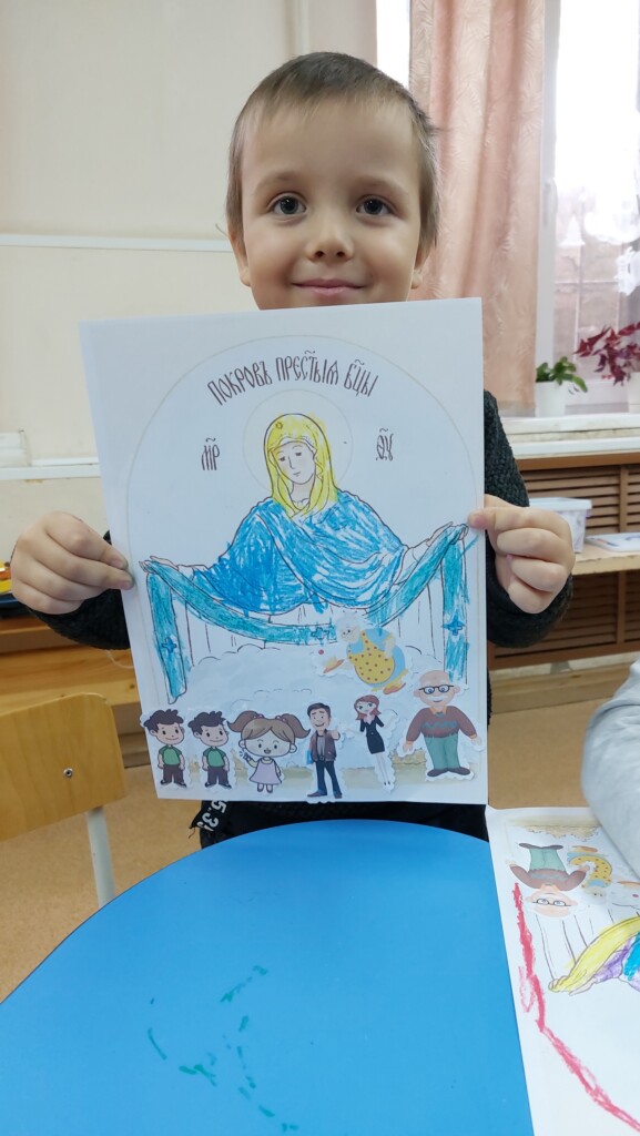 Прошло первое занятие у малышей на котором вспомнили лето и ребята рассказали чем занимались летом. Разгадывали загадки про лето и летние игры. Сделали вывод что Господь сотворил природу и все вокруг по любви к нам, что бы мы имели возможность и купаться в реке, и собирать ягоды, загорать и играть. Прочитали рассказ «Что я люблю и что не люблю» Драгунского В., а потом поиграли в игру с мячом «Люблю», ребята поймавшие мяч должны были сказать, что они любят. В конце урока поговорили о наступающем празднике Покрова Божией Матери. На рисунке под амофором ребята собрали свою семью и разукрасили амофор!