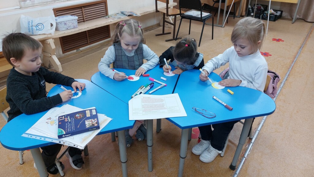 На занятиях в средней группе, разобрали молитву Отче наш. Разобрали первый и второй член Символа веры. Работали с пособиями, говорили об образе Спасителя, выполнили практические задания. По окончании занятия, ребята выполняли задание в котором они могли отразить свой взгляд на Дни сотворения мира.
