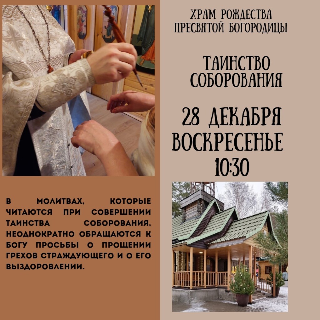 28 декабря 2025г. в нашем храме состоится таинство Соборования.