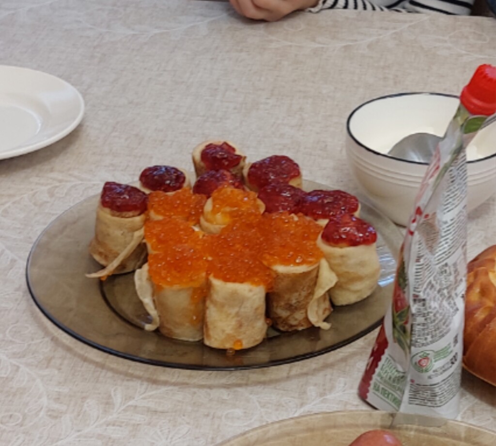 «Царский стол» — блинные рулетики с икрой и малиновым вареньем, которым нет равных!