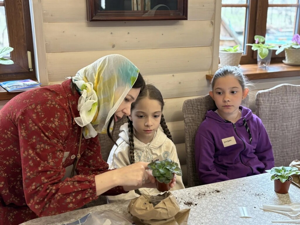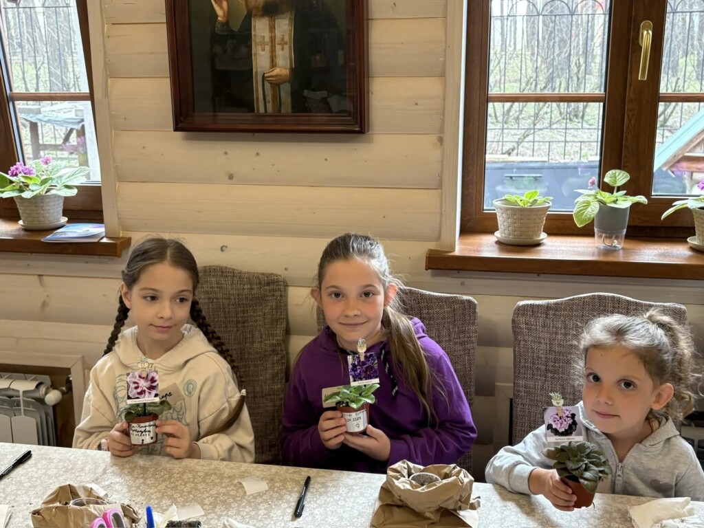 В Вербное воскресенье после Божественной литургии в нашем приходском домике прошёл мастер-класс по посадке фиалок для девочек и их мам.